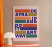 Un design tipografico audace e stimolante con la frase motivazionale "Be Afraid and Do It Anyway". Questo testo moderno, in stile blocco, è abbinato a colori di ispirazione retrò, creando un pezzo di grande impatto e ispirazione. Perfetto per aggiungere un tocco di fiducia a decorazioni per la casa, abbigliamento e accessori. Ideale per chi ama i messaggi forti e il design audace. Creato da showmemars