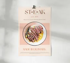 Bistecca perfettamente grigliata servita su un semplice piatto bianco carta hahnemühle