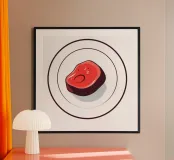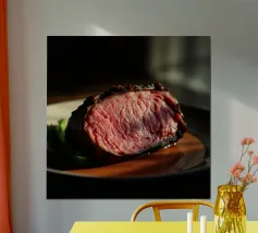 Bistecca succulenta su un piatto bianco dal design semplice carta hahnemühle