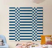 Checks and Lines blu e bianco unisce un fascino senza tempo a un tocco eclettico. La rinfrescante combinazione di blu d'ispirazione nautica e di bianco nitido evoca una brezza costiera, mentre il motivo strutturato aggiunge un'eleganza vintage. Perfetto per l'autunno e l'inverno, questo disegno dona un'atmosfera fresca e accogliente a qualsiasi ambiente.