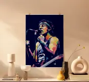 Bruce Springsteen in stile WPAP è un ritratto vibrante e geometrico del Boss, caratterizzato da forme audaci e spigolose e da sorprendenti contrasti di colore. Questa moderna tecnica pop-art cattura la sua intensa energia e la sua presenza leggendaria, riflettendo la sua profonda influenza sulla musica rock. Lo stile WPAP esalta la sua immagine iconica, sottolineando le sue performance appassionate e la sua abilità di narratore attraverso tinte dinamiche e ad alto contrasto.