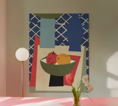 Questo cesto di frutta colorato come illustrazione moderna porta immediatamente freschezza e leggerezza in qualsiasi cucina. Il design colorato combina forme disegnate a mano, linee pulite e un'estetica giocosa - perfetto come murale per la cucina, la sala da pranzo o l'angolo della colazione. La stampa si adatta a concetti di interni sia minimalisti che colorati e aggiunge un accento moderno e amichevole. Ideale per chi è alla ricerca di stampe artistiche fruttate, di decorazioni murali illustrative e di un aggiornamento di stile per la cucina.