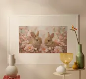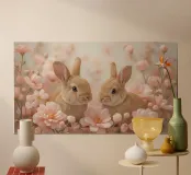 Carino Due conigli in fiori rosa carta hahnemühle
