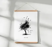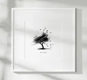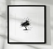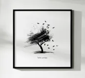 Questa elegante opera d'arte cattura l'essenza dell'autunno con un albero grazioso e foglie cadenti, disegnate in uno stile minimalista di pennellate in bianco e nero. È possibile personalizzare il testo per renderlo proprio, ma l'opera d'arte rimane fissa per preservare il suo carattere unico.