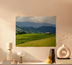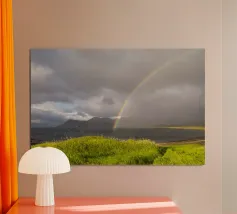 Colline verdi con arcobaleno e rocce carta hahnemühle