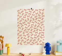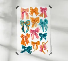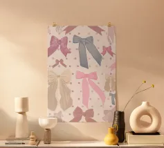 Un motivo giocoso di fiocchi colorati in rosso, rosa, verde acqua, verde lime e pesca, sparsi su un morbido sfondo color pesca con accenti di stelle bianche. Questo disegno allegro e festoso dona un fascino stravagante, perfetto per aggiungere un tocco femminile e gioioso al vostro spazio. Ideale per confezioni regalo, decorazioni ispirate alla moda o per chiunque ami un motivo audace ma delicato. Creato da showmemars