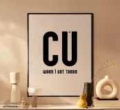 Ci vediamo quando arrivo. Espressione e tipografia in nero e bianco (trasparente). È possibile cambiare il colore dello sfondo. Poster tipografico minimalista.
