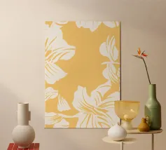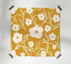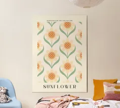Questa opera d'arte digitale con motivo a dente di leone in giallo è un pezzo di grande impatto visivo. L'opera presenta un motivo ripetuto di denti di leone reso in stile digitale. L'uso del blu crea un senso di armonia ed equilibrio in tutta l'opera.