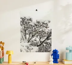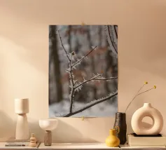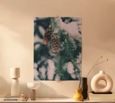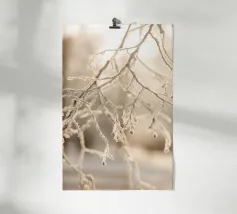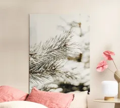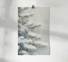 Questo suggestivo motivo mostra rami di abete in filigrana ricoperti da un delicato strato di neve e brina. I dettagli naturali e le calde sfumature di colore dei rami creano un'estetica invernale armoniosa e rilassante. Perfetto come murale, tazza, custodia per cellulare o cuscino, questo disegno porta in ogni casa la tranquilla eleganza delle giornate invernali innevate e la bellezza della natura. Ideale per gli amanti della fotografia naturalistica moderna e dell'arte invernale minimalista.