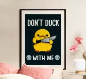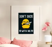 Fate una dichiarazione audace con "Don't Duck With Me"! Questo design sfrontato combina umorismo e atteggiamento, perfetto per coloro che si fanno valere e si fanno valere. Un modo giocoso per dimostrare che fate sul serio
