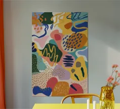 Un'esplosione vibrante di colori dopaminici e texture astratte, questo pezzo irradia un caos gioioso e un'energia massimalista. Ispirato all'estetica della pop art e all'illustrazione digitale moderna, è una dichiarazione audace per gli interni contemporanei. Perfetto per chi ama il colore, il movimento e la libertà artistica.