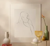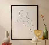 Una delicata celebrazione della forma umana, catturata in poche linee fluide. Quest'opera d'arte minimalista fonde morbidezza, eleganza e sensualità, creando un momento sereno di intimità e bellezza. Perfetta per gli interni contemporanei che cercano un tocco di calma e di espressione artistica.