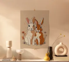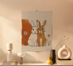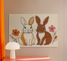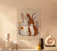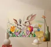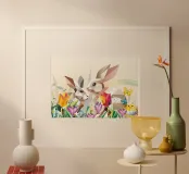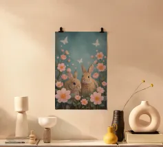 Due coniglietti di Pasqua in un mare di fiori carta hahnemühle