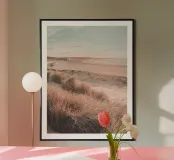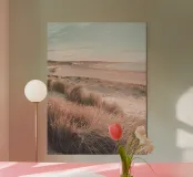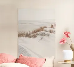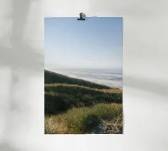 Questo motivo cattura la bellezza idilliaca di un paesaggio di dune assolate che si estende lungo un'ampia spiaggia sabbiosa. I colori caldi dell'erba e della spiaggia che si incurva dolcemente creano un'atmosfera rilassante che trasmette la sensazione di un rifugio tranquillo. Ideale come murale, cover per cellulare, cuscino o tazza per aggiungere un tocco fresco e naturale alla stanza. Perfetto per gli amanti dei motivi da spiaggia, del design scandinavo e dei momenti di pace nella natura.