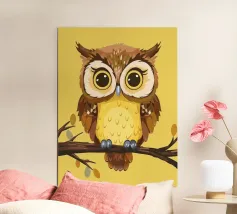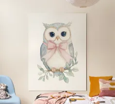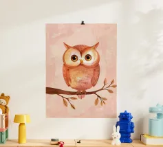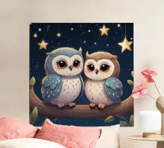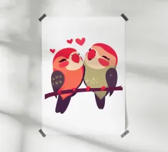 Simpatici gufi dipinti ad acquerello su un ramo con un cuore allegato.