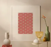 Questa opera d'arte digitale con motivo di piume in rosso pastello mette in mostra la composizione unica dell'artista. Il motivo ripetuto di piume reso in stile digitale con il rosso pastello crea un senso di armonia. Perfetto per chi apprezza l'arte digitale.