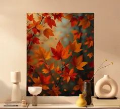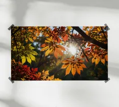 Foglie d'autunno illuminate dalla luce del sole in un ambiente tranquillo. carta hahnemühle
