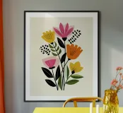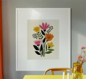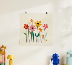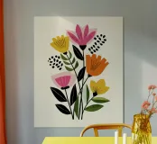 Audace, giocosa e artistica, questa opera d'arte botanica ispirata alla metà del secolo scorso porta lo spirito di Matisse nella casa moderna. Forme floreali sovradimensionate in toni retrò come il rosso pomodoro, il giallo senape, il corallo tenue e il verde acqua sono disposte in stile collage su uno sfondo chiaro. La composizione astratta bilancia il flusso organico con la chiarezza grafica, perfetta per creare un look vivace ma curato. Ideale come elemento di spicco in salotti, studi o spazi di lavoro creativi.