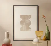 Aggiungete un tocco di moderna eleganza al vostro spazio con questo quadro astratto ad acquerello che presenta forme geometriche in toni neutri. Abbracciate lo stile scandinavo con questa opera d'arte semplice ma di grande effetto, che eleverà l'estetica di qualsiasi stanza. Perfetto per chi apprezza il design minimalista e le linee pulite.