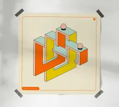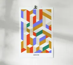 Forme geometriche colorate disposte in un motivo creativo carta hahnemühle