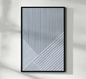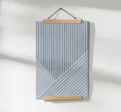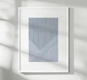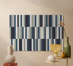 Disegno astratto con sezioni di linee bianche diagonali e verticali su sfondo azzurro, che creano un motivo geometrico dinamico. Ideale per progetti di arredamento moderno e design grafico.
