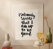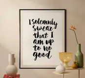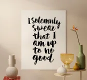 Date un tocco di malizia al vostro spazio con questa stampa tipografica giocosa. L'iconica frase "I Solemnly Swear That I Am Up to No Good" (Giuro solennemente che non ho intenzione di fare nulla di buono) è splendidamente resa in caratteri neri disegnati a mano, su uno sfondo bianco pulito. Questo pezzo accattivante cattura lo spirito di avventura e di innocua ribellione. Perfetta per gli appassionati di racconti magici o per chiunque abbia un debole per i guai, quest'opera d'arte susciterà sicuramente gioia e conversazione. Lasciate che questa affascinante stampa vi ricordi di abbracciare il trickster che è in voi e di aggiungere un pizzico di divertimento alla vostra giornata.