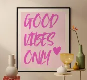 Sfondo rosa con slogan rosa: Good vibes only.