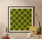 Portate nel vostro spazio un'energia fresca e audace con questa stampa a scacchiera verde linfa dal sapore retrò. I suoi quadretti ondulati e disegnati a mano emanano una giocosa atmosfera vintage, pur rimanendo minimalisti e moderni. Perfetta per gli interni eclettici, per le decorazioni murali retrò o per tutti coloro che amano i motivi d'arte vivaci con un'ispirazione anni '70 senza tempo.