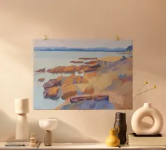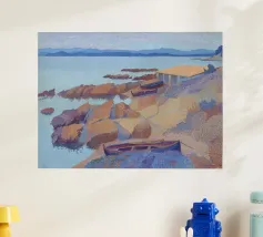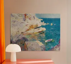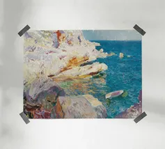 Scoprite la vibrante bellezza di una calanca mediterranea catturata nello stile puntinista di Henri-Edmond Cross. Questo poster d'arte, probabilmente intitolato "Calanque des Antibois", raffigura una piccola baia pittoresca vicino ad Antibes con rocce colorate, acque tranquille e barche che riposano sulla riva. La tecnica tipica dell'artista, che consiste nell'applicare colori puri in punti distinti, crea una superficie vivace e strutturata che risplende di luce. Prodotto come arte digitale di alta qualità a 7000x5000 pixel e 300 dpi, garantisce una rappresentazione fedele dei colori brillanti e dei dettagli più fini per un'opera d'arte di qualità.
