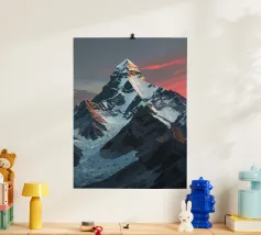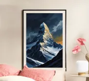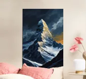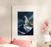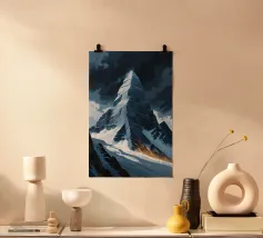 Quest'opera d'arte celebra il K2 concentrandosi sui suoi strati unici e illuminati. La luce cattura i modelli angolari e le formazioni geometriche della vetta, creando una miscela armoniosa di realismo e astrazione. I forti contrasti tra le superfici illuminate dal sole e le creste in ombra conferiscono alla montagna un'eleganza architettonica, preservandone la cruda essenza naturale. Questa suggestiva composizione ricorda lo status di icona del K2, sia come meraviglia geografica che come musa artistica.