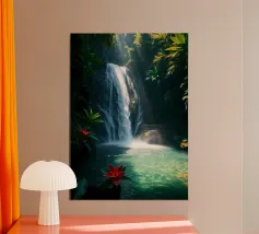 Questa ipnotica cascata di Bali cade con grazia da una scogliera ricoperta di giungla, creando una cascata a più livelli che sfocia in una laguna turchese. Circondata da una vivace flora tropicale, tra cui delicate orchidee e felci imponenti, la scena emana un fascino mistico. La luce del sole fa capolino attraverso la tettoia, proiettando un magico bagliore sull'acqua. Il suono ritmico della cascata riecheggia nella valle, invitando i viaggiatori a riconnettersi con la natura e ad abbracciare l'energia pacifica di questo paradiso incontaminato.