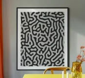Un capolavoro monocromatico di Artezza che crea un affascinante labirinto visivo con strutture di linee intrecciate. Le forme organiche ricordano le reti neurali o i modelli naturali come i corsi d'acqua o le strutture cellulari. Il design astratto in bianco e nero ha un effetto meditativo e moderno, perfetto per ambienti minimalisti con aspirazioni artistiche.