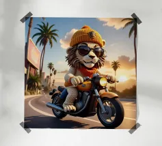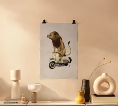 Rispetto a Cecil e alla mia precedente stampa Rooooaaar!, la seconda della serie di grandi felini su piccole moto!!! Il leone e la Lamb-retta!