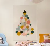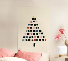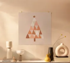 Un albero di Natale minimalista di ispirazione Bauhaus, composto da forme geometriche stratificate e texture punteggiate. La calda tavolozza di terracotta, senape, fard e verde bosco crea un'estetica raffinata ma giocosa. Questo pezzo contemporaneo dà un tocco moderno e artistico all'arredamento stagionale, perfetto per gli amanti del design e degli spazi creativi.