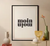 Moin moin, amore, nero, bianco, tipografia, citazione, detto, divertimento, ufficio, camera dei bambini, soggiorno, camera da letto, cucina, retrò
