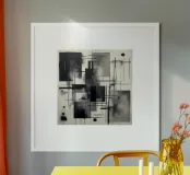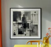 Arte astratta monocromatica - Suite di 2 pezzi intitolata Caos e Struttura - questo è il pezzo 2 di 2. L'opera gioca con i contrasti - luce e buio, movimento e immobilità, precisione e spontaneità - suscitando un senso di tensione e intensità controllata. La tavolozza in scala di grigi ne amplifica l'atmosfera moderna e industriale, pur lasciando spazio all'interpretazione personale.