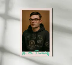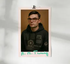 Alan Turing - padre dell'informatica - reinterpretato in chiave contemporanea: felpa con cappuccio, occhiali, codice binario e gadget retrò si fondono per creare un ritratto a metà tra storia e cultura pop. Il motivo rende omaggio a Turing come pioniere del mondo digitale, ideale per i fan dell'informatica, gli hacker, gli storici e gli appassionati di design. Come murale o stampa, il disegno esprime una chiara affermazione: il nerd è di culto.