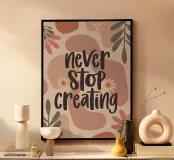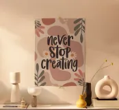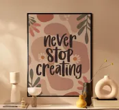 Un tributo alla creatività e all'espressione di sé, questo disegno di ispirazione boho incoraggia a continuare a creare, sognare e innovare. Con morbide tonalità pastello e forme astratte, "Never stop creating" è un promemoria quotidiano per abbracciare il proprio spirito artistico e perseguire le proprie passioni. Perfetto per artisti, creatori e sognatori.