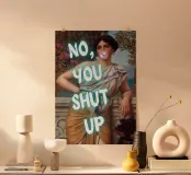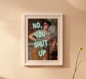 Fate una dichiarazione di sfida e di umorismo con "No, tu stai zitto!". Questa accattivante stampa pop art fonde brillantemente la bellezza classica con una replica moderna e impertinente. Presenta una serena figura classica, elegantemente drappeggiata e in posa sicura, che soffia giocosamente una bolla di gomma da masticare. Il testo bianco e luminoso "NO, YOU SHUT UP" sovrasta l'immagine, trasformando l'arte senza tempo in una spiritosa espressione di sfida contemporanea. Perfetto per aggiungere personalità e un tocco di fascino ribelle a qualsiasi spazio moderno. Realizzato con un'eccezionale risoluzione di 7000x5000 pixel e 300 dpi, per garantire un'ottima qualità di stampa.