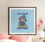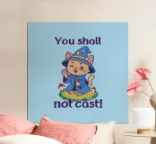 Un simpatico gatto mago con un mantello blu si trova su un cerchio magico e alza la zampa con un ammiccamento sfacciato. Questo design giocoso parodia l'iconica strategia blu di contrastare le magie in Magic: The Gathering. Perfetto per i giocatori di controllo, i fan dei mazzi blu e tutti coloro che amano dire "no" con stile.