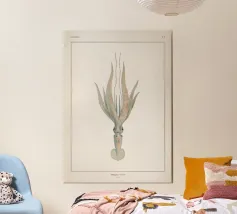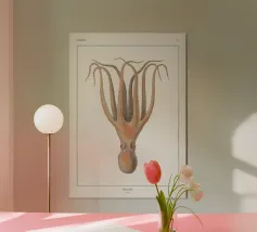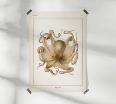 Questa suggestiva stampa d'arte reimmagina un'illustrazione d'epoca del 1890 di un polpo Velodona, originariamente disegnata da Carl Chun per la German Deep Sea Expedition. Ora l'immagine è stata rivisitata in chiave contemporanea con morbide sfumature pastello e forme circolari radianti, elevando l'immagine da scientifica a sacra. Questo pezzo è perfetto per gli amanti dell'oceano, per i collezionisti attenti al design o per chiunque voglia portare un tocco di surreale nel proprio spazio. Ideale per bagni, nursery a tema costiero o come audace dichiarazione in interni moderni: è la storia naturale con un'anima psichedelica.