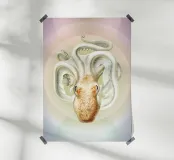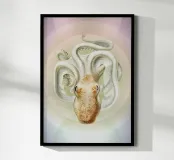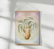 Questa suggestiva stampa d'arte reimmagina un'illustrazione d'epoca del 1890 di un polpo Velodona, originariamente disegnata da Carl Chun per la German Deep Sea Expedition. Ora l'immagine è stata rivisitata in chiave contemporanea con morbide sfumature pastello e forme circolari radianti, elevando l'immagine da scientifica a sacra. Questo pezzo è perfetto per gli amanti dell'oceano, per i collezionisti attenti al design o per chiunque voglia portare un tocco di surreale nel proprio spazio. Ideale per bagni, nursery a tema costiero o come audace dichiarazione in interni moderni: è la storia naturale con un'anima psichedelica.