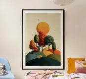 Colline calde. Alberi dorati. Autumn Rising è una vibrante celebrazione della stagione a colori. Con la sua geometria stratificata, il fogliame strutturato e la tipografia di rilievo, questo disegno cattura la calma accogliente e i toni ricchi dell'autunno. Ideale per interni moderni, pareti di gallerie stagionali o come centrotavola d'effetto nei mesi più caldi dell'anno.