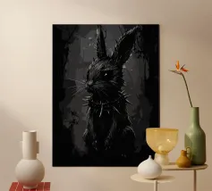 Orecchie di coniglio tristi e occhi afflitti in un ambiente buio carta hahnemühle