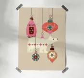 Orso polare e ornamenti natalizi retrò carta hahnemühle