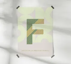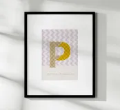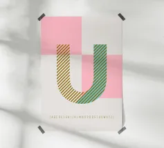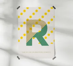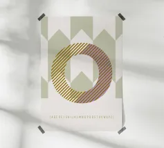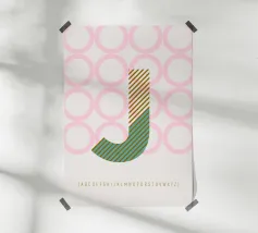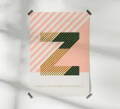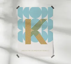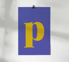 P-TYPEFACE in un design senza tempo - poster tipografico con colori vivaci e un gioco di forme sullo sfondo.