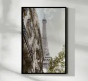 Questo suggestivo motivo fotografico cattura l'atmosfera romantica di Parigi in tutto il suo splendore. L'iconica Torre Eiffel si erge maestosa tra gli eleganti edifici Hausmann con le loro ringhiere ornate e le facciate dettagliate. La luce soffusa e i colori pastello conferiscono all'opera un'estetica senza tempo e sottolineano il fascino della città dell'amore.