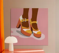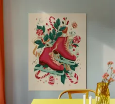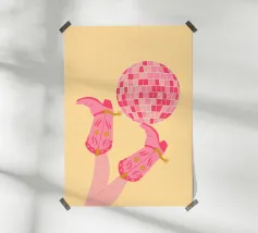 Scatenatevi con questa giocosa opera d'arte di una ragazza pattinatrice!Questa vibrante illustrazione di ispirazione rétro presenta una ragazza in posa a gambe alzate con pantaloncini gialli, calzini sportivi bianchi con strisce blu e rosse e pattini a rotelle rossi con grafica arcobaleno. Su uno sfondo a scacchi distorto rosa pastello, questo disegno trasmette tutto il divertimento spensierato e le vibrazioni funky degli anni Settanta. Perfetta per le ragazze sportive e dallo spirito libero, questa opera d'arte aggiunge un tocco di colore e di attitudine a camerette, accessori, articoli di cancelleria e altro ancora. Ideale per tutti coloro che amano l'estetica retrò e il divertimento.