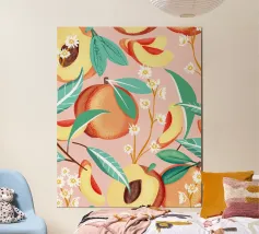 Ravvivate il vostro spazio con il nostro vivace disegno che presenta arance e pesche in una deliziosa tavolozza di colori pesca, ispirata ai colori Pantone. Questo disegno cattura l'essenza succosa della frutta estiva, con illustrazioni giocose di arance mature e di pesche sfogliate, completate da morbide foglie bianche e color pesca che aggiungono un tocco rinfrescante. Le armoniose tonalità di pesca creano un'atmosfera invitante, perfetta per cucine, zone pranzo o tessuti giocosi. Utilizzato per tessuti, carta da parati o complementi d'arredo, questo allegro motivo dona un tocco di fascino ispirato alla frutta e un'esplosione di colore a qualsiasi ambiente.