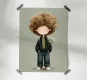 Poster per la cameretta di un ragazzo con i capelli ricci carta hahnemühle